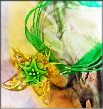 Glasswork Necklaces and Accessories are paired with appropriately colored ribbon and cord necklace.